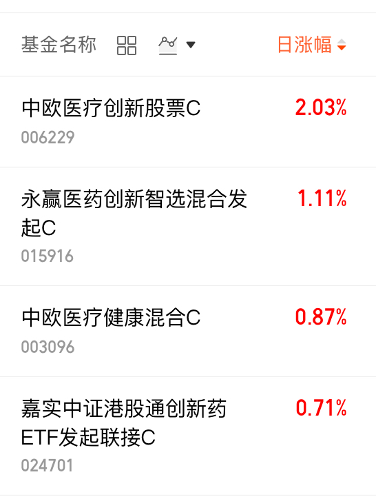 本周股市可谓完美收官,今天随着指数的拉升,大科技盘中大幅走高,医疗板块也表现不错,今晚的$中欧医疗创新股票C(OTCFUND|006229)$大涨+2.03%,同类基中涨幅靠前,表现出色啦!