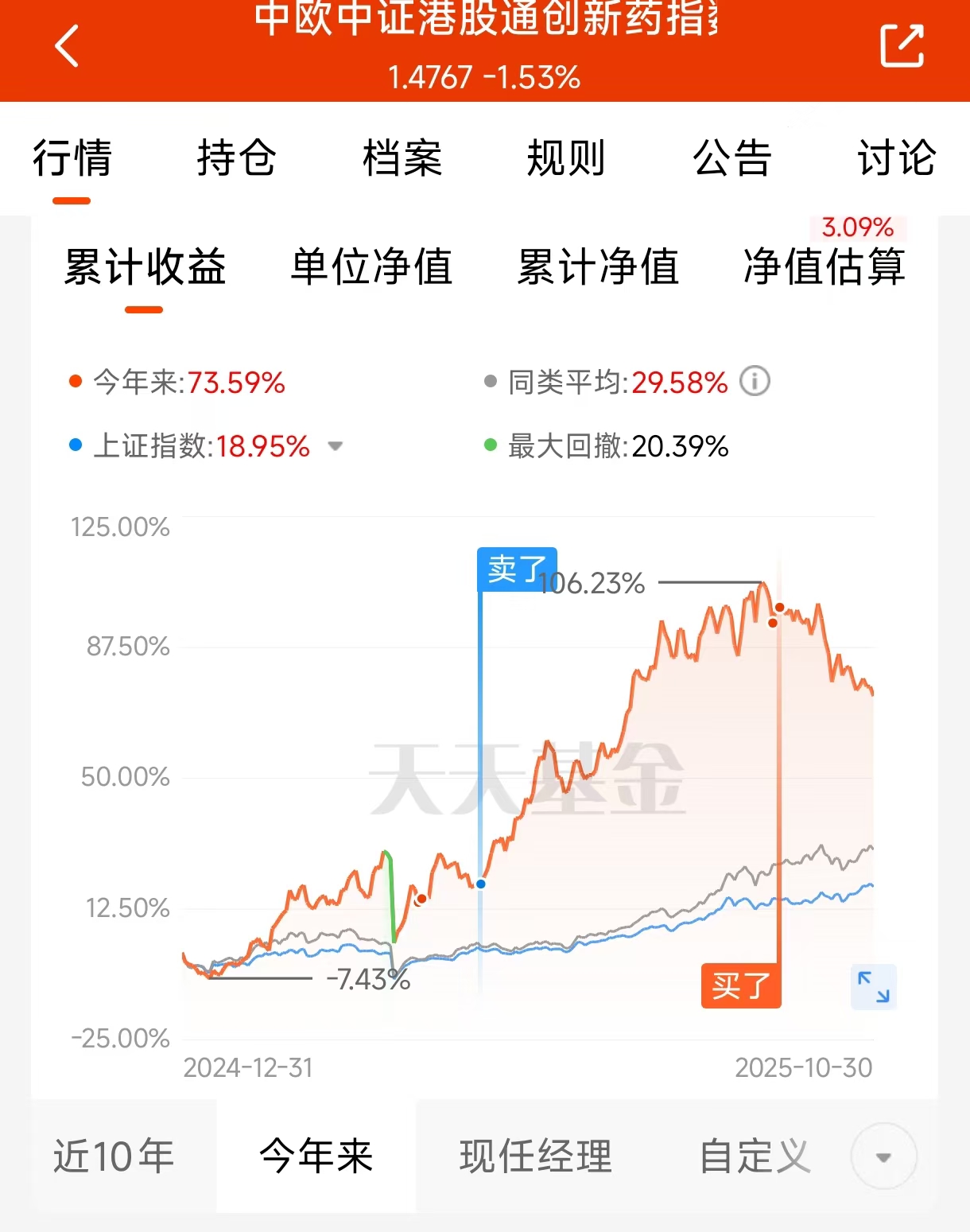 别看今天大盘震荡,创新药基金一枝独秀!有个数据可能被忽视了:主动管理的医药主题基金里,创新药配置比例占到40%,是所有细分领域里最高的。这说明专业投资者早就盯上这块了。$中欧中证港股通创新药指数发起C$(021760)跟踪的指数市盈率才31倍多,比近三年80%的时间都低,安全垫够厚。而且美联储降息周期来了,创新药这种需要长期投入的行业,融资成本会降低,企业搞研发更放得开手脚。最近板块调整了快一个月,今天放量上涨,像是有资金回流了。详情页还能领个红包,凑巧赶上了这波启动。#美联储再次降息!12月降息与否难料#