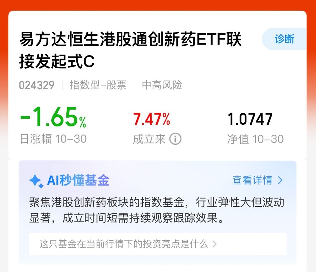 利好消息扎堆来袭,医药一路飘红,创新药涨得喜人$易方达恒生港股通创新药ETF联接发起式C$