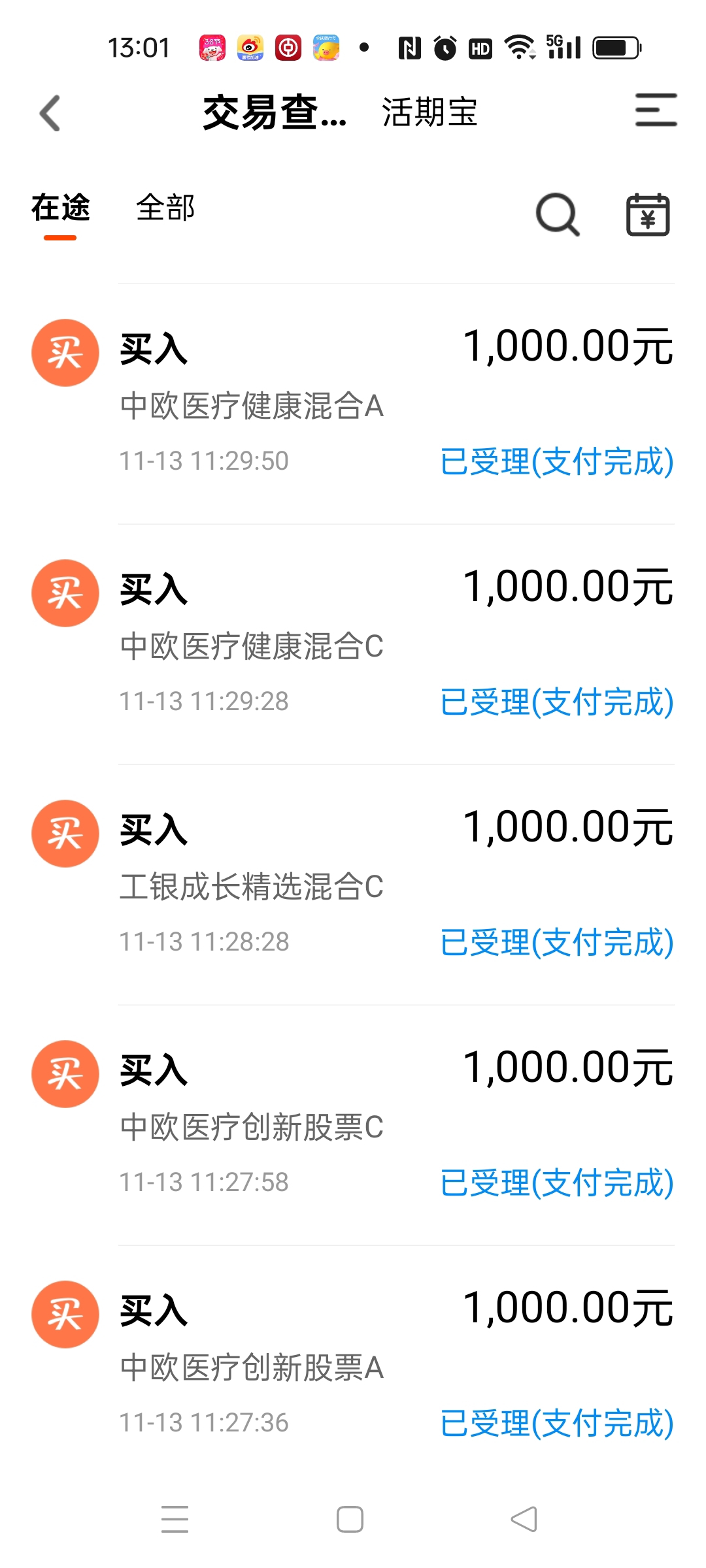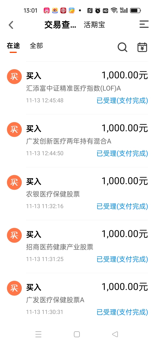 所以我今天追涨了一批持仓的药基,前几天是小单在补,今天就买1000元了,其它的基金买了几百的也有。也是对前妻的高抛后,筹码回补的动作。