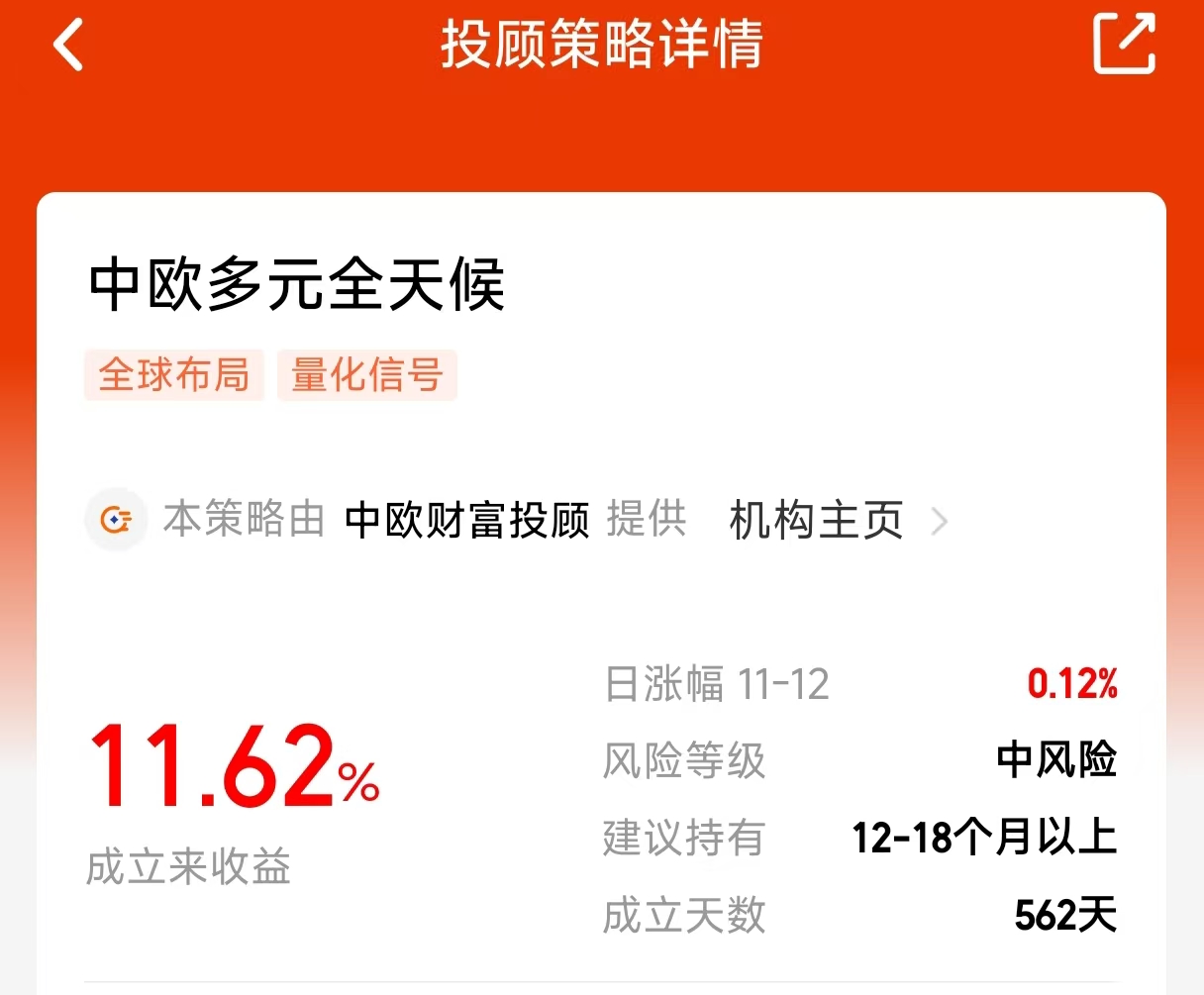 市场再次来到4000点关口,身边有朋友开始犹豫是进场还是观望。我的想法是,与其纠结点位,不如优化自己的配置结构。像中欧多元全天候这样的投顾组合,提供了一个不同的思路。它不赌某个市场的方向,而是通过在全球范围内配置低相关性的资产,让组合自身具备一定的平衡能力。债券打底提供基础收益,全球多资产增强部分则力争捕捉不同市场的机会。查看它在天天基金投顾管家#黄金又牛起来了!这次你上车了吗?#