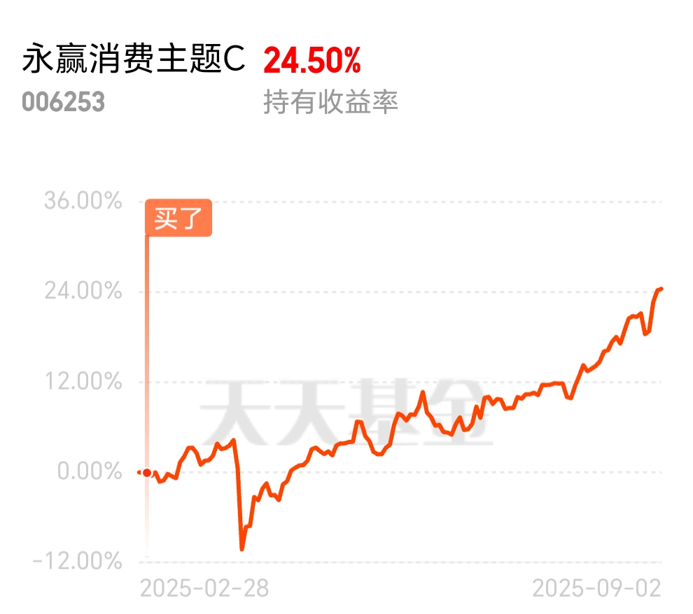 $永赢消费主题C$最近行情开始回暖了,收益是不是也一步一个台阶往上进了