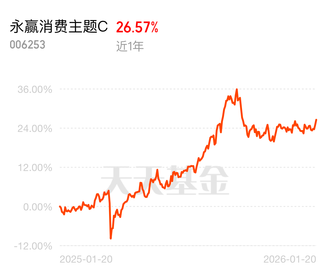现在消费市场太火了,情绪消费、绿色消费都在涨,政策还一个劲给支持,社零总额也预计平稳增长。想搭这波快车不用瞎找,永赢消费主题 C 近 1 年涨了 26.57%,稳稳跟上消费升级节奏,不管是日常消费还是新消费赛道,都能帮你一键布局,省心又靠谱。