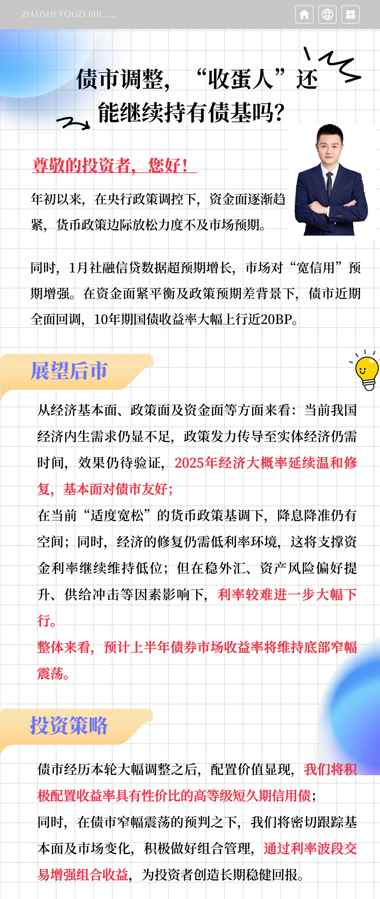 风险提示:数据来源:Wind。数据内容仅供参考,不构成投资建议或承诺,不构成对未来行情趋势的判断,也不代表本公司产品收益情况。投资者据此操作,风险自担。基金管理人以诚实信用、勤勉尽责原则管理和运用基金资产,但不保证本基金一定盈利,也不保证最低收益。华宸未来稳健添利债券型证券投资基金基金风险等级为R2,适合经客户风险承受等级测评后结果为C2及以上的投资者。产品风险等级匹配规则详见华宸未来基金官网。本材料仅为宣传材料,不作为任何法律文件。投资人购买基金之前,须认真阅读《基金合同》、《招募说明书》、《基金产品资料概要》等法律文件,了解基金产品风险收益特征,根据自身风险承受能力审慎决策,独立承担投资风险。基金管理人管理的其他基金业绩和其他投资人员取得的过往业绩以及同类基金的过往业绩表现,均不构成基金业绩表现的保证,基金有风险,投资需谨慎。