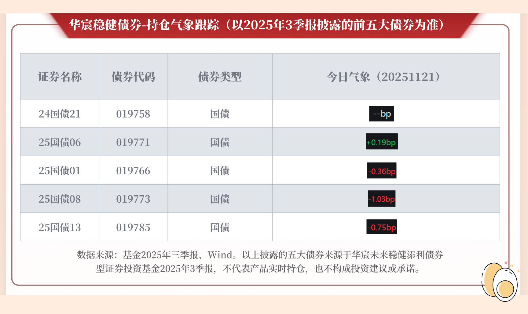 风险提示:数据来源:WIND。数据内容仅供参考,不构成投资建议或承诺,不构成对未来行情趋势的判断,也不代表本公司产品收益情况。投资者据此操作,风险自担。基金管理人以诚实信用、勤勉尽责原则管理和运用基金资产,但不保证本基金一定盈利,也不保证最低收益。华宸未来稳健添利债券型证券投资基金基金风险等级为R2,适合经客户风险承受等级测评后结果为C2及以上的投资者。产品风险等级匹配规则详见华宸未来基金官网。本材料仅为宣传材料,不作为任何法律文件。投资人购买基金之前,须认真阅读《基金合同》、《招募说明书》、《基金产品资料概要》等法律文件,了解基金产品风险收益特征,根据自身风险承受能力审慎决策,独立承担投资风险。基金管理人管理的其他基金业绩和其他投资人员取得的过往业绩以及同类基金的过往业绩表现,均不构成基金业绩表现的保证,基金有风险,投资需谨慎。