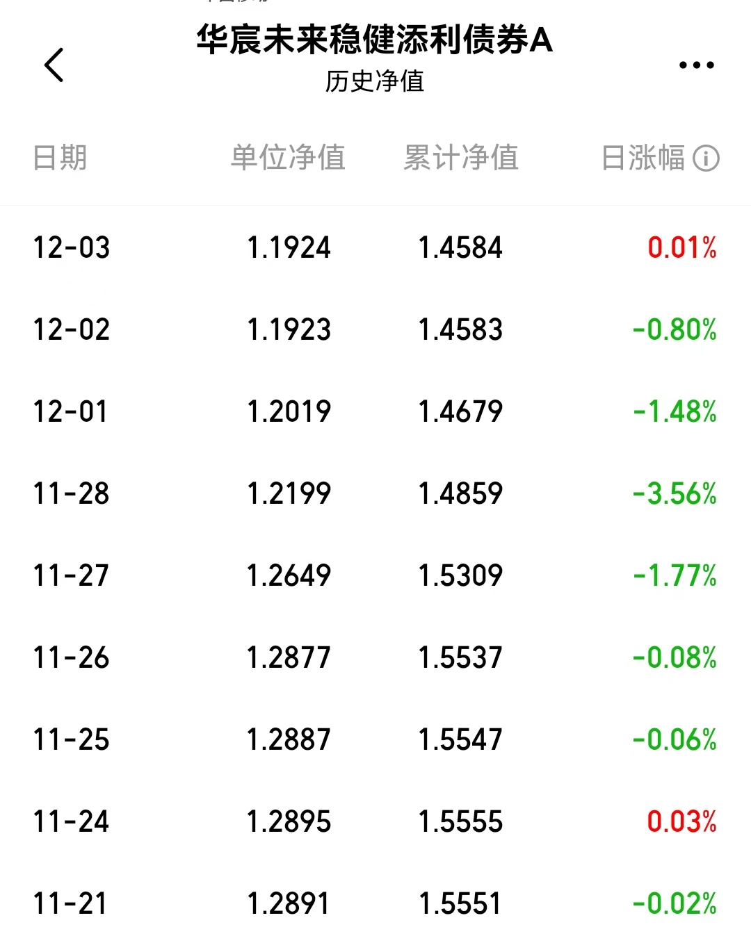 近期,华宸未来稳健添利债券A/C(000104/006258)因为连续下跌受到较多关注,然而可以说道的还不止这一点。