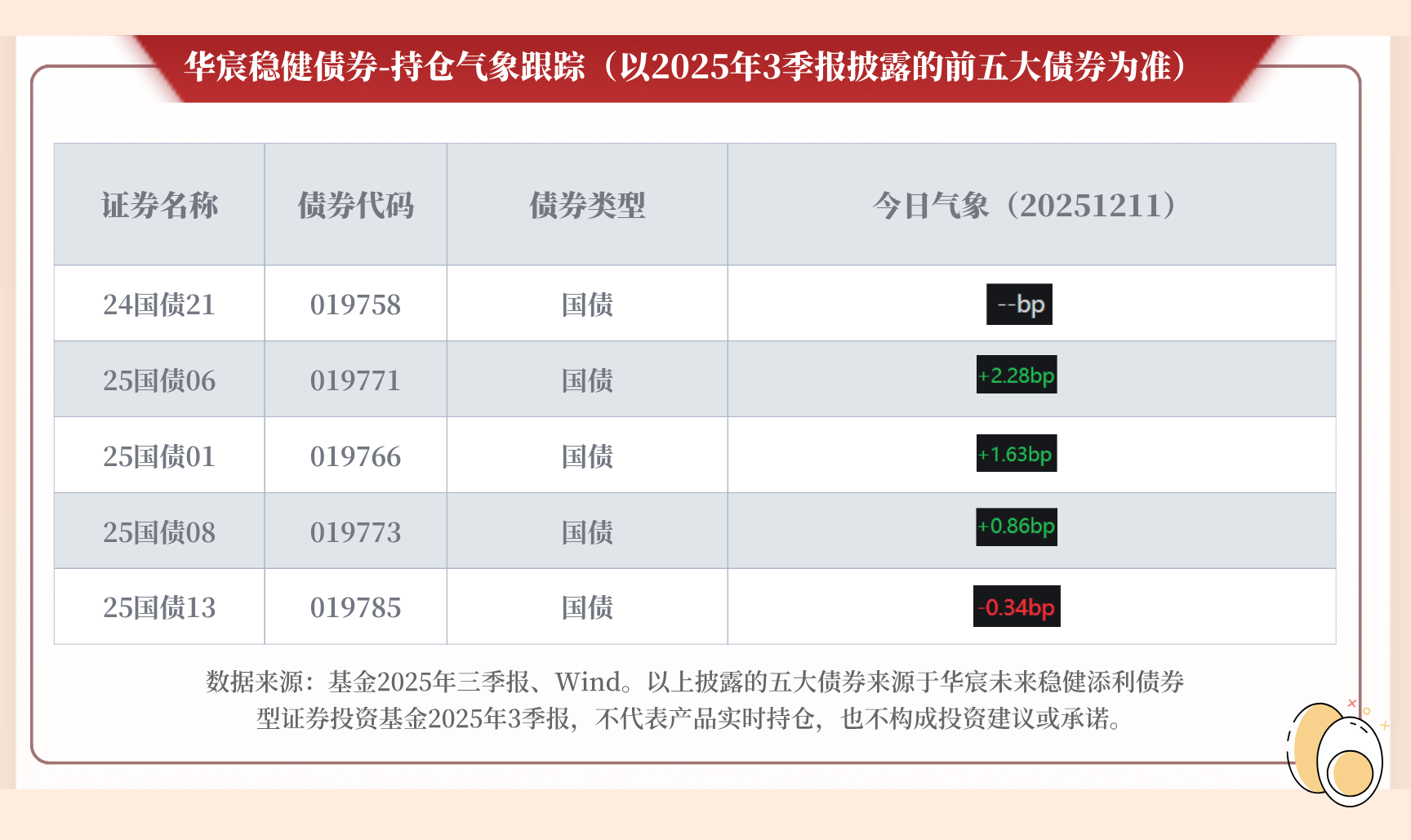 风险提示:数据来源:WIND。数据内容仅供参考,不构成投资建议或承诺,不构成对未来行情趋势的判断,也不代表本公司产品收益情况。投资者据此操作,风险自担。基金管理人以诚实信用、勤勉尽责原则管理和运用基金资产,但不保证本基金一定盈利,也不保证最低收益。华宸未来稳健添利债券型证券投资基金基金风险等级为R2,适合经客户风险承受等级测评后结果为C2及以上的投资者。产品风险等级匹配规则详见华宸未来基金官网。本材料仅为宣传材料,不作为任何法律文件。投资人购买基金之前,须认真阅读《基金合同》、《招募说明书》、《基金产品资料概要》等法律文件,了解基金产品风险收益特征,根据自身风险承受能力审慎决策,独立承担投资风险。基金管理人管理的其他基金业绩和其他投资人员取得的过往业绩以及同类基金的过往业绩表现,均不构成基金业绩表现的保证,基金有风险,投资需谨慎。