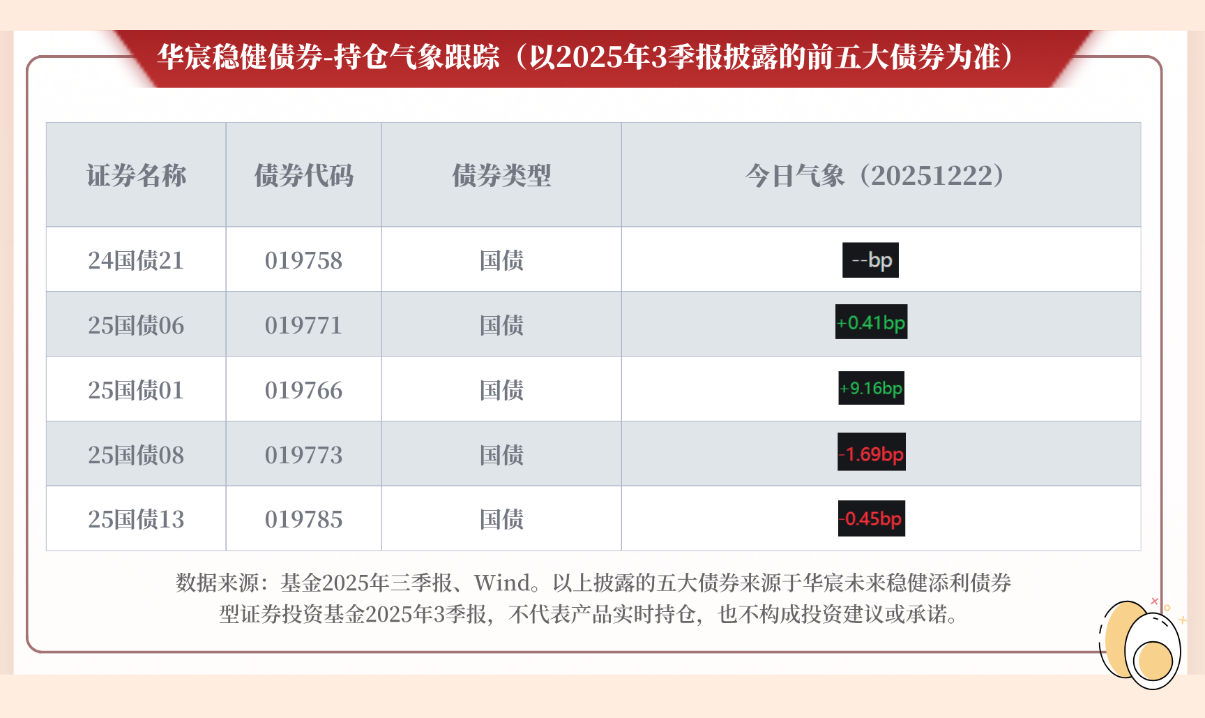 风险提示:数据来源:WIND。数据内容仅供参考,不构成投资建议或承诺,不构成对未来行情趋势的判断,也不代表本公司产品收益情况。投资者据此操作,风险自担。基金管理人以诚实信用、勤勉尽责原则管理和运用基金资产,但不保证本基金一定盈利,也不保证最低收益。华宸未来稳健添利债券型证券投资基金基金风险等级为R2,适合经客户风险承受等级测评后结果为C2及以上的投资者。产品风险等级匹配规则详见华宸未来基金官网。本材料仅为宣传材料,不作为任何法律文件。投资人购买基金之前,须认真阅读《基金合同》、《招募说明书》、《基金产品资料概要》等法律文件,了解基金产品风险收益特征,根据自身风险承受能力审慎决策,独立承担投资风险。基金管理人管理的其他基金业绩和其他投资人员取得的过往业绩以及同类基金的过往业绩表现,均不构成基金业绩表现的保证,基金有风险,投资需谨慎。