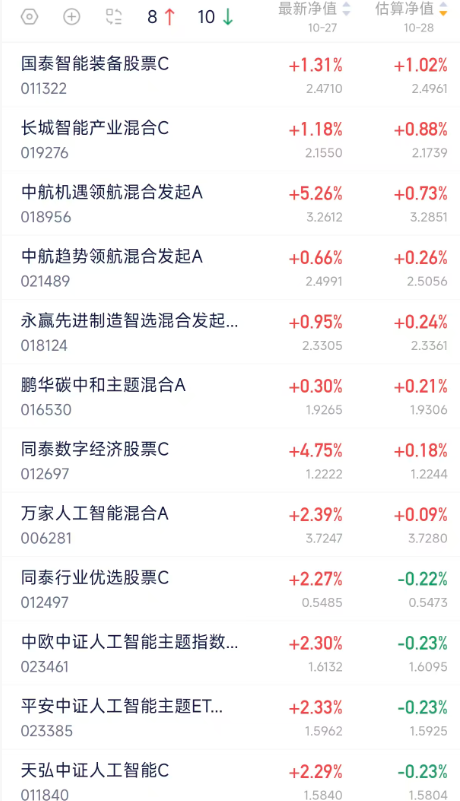 人工智能基金估值盘后检阅,收益早知,基金甄选