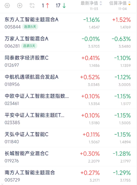 指数涨跌幅:中证人工智能主题指数(930713)收盘跌1.15%,AI人工智能(512930)同步下跌1.08%。