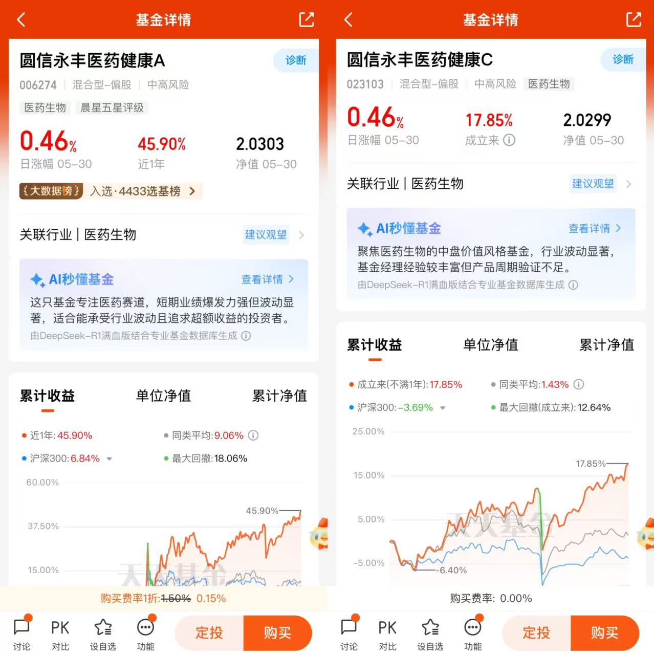 $圆信永丰医药健康A$ $圆信永丰医药健康C$