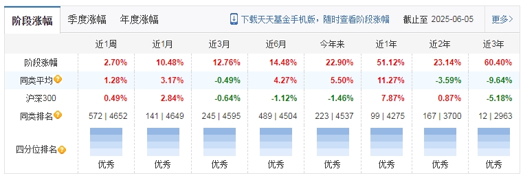 从历史业绩来看,圆信永丰医药健康A基金的表现相当出色。从业绩角度来看:圆信永丰医药健康A近3年收益达60.40%,在同类2963只基金中排名第12,表现实属优秀。截至2025年6月5日,圆信永丰医药健A成立来获得了107.56%的收益回报,优于同期业绩比较基准的10.65%,超额收益显著,在当前震荡的环境下具备较高的配置价值。基金成立以来,其收益率远超同类平均水平,且跑赢沪深300指数。特别是在一些市场波动较大的时期,基金凭借其稳健的投资策略和出色的风险管理能力,成功地抵御了市场的风险,保持了基金的稳定增值。