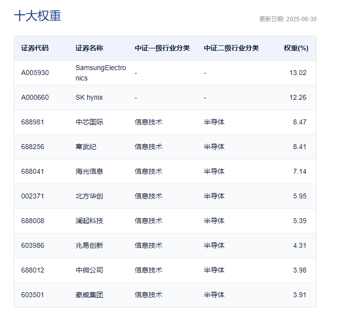 中韩半导体由中证半导体15和KRX半导体15两个指数按照各自50%加权编制,每年6月和12月第二周做一次再平衡。