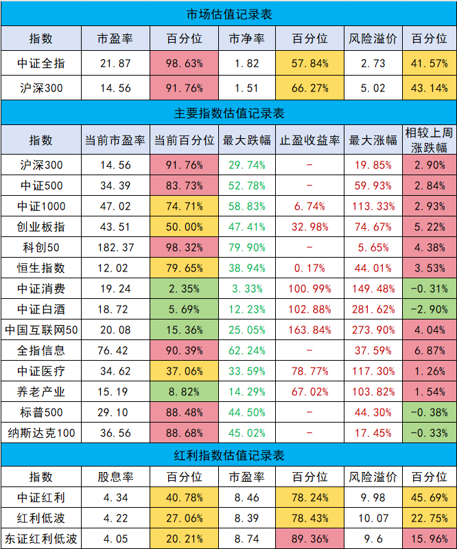 本账号每周更新市场估值周报,为指数投资提供数据支撑!欢迎关注!
