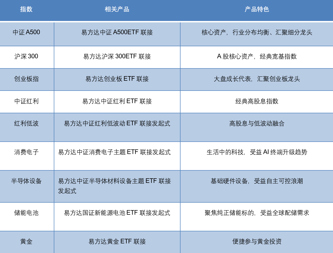 基金有风险,投资须谨慎。相关指数及行业表现不预示未来,不作为投资收益保证,亦不作为投资建议;以上内容由公开消息整理而来,仅供参考,不代表易方达基金研究观点。不作为对上述所涉行业相关股票的推荐,也不作为对投资者的投资建议。本材料不构成公司任何业务的宣传推介材料、投资建议或保证,也不作为任何法律文件,本基金管理人承诺以诚实信用、勤勉尽责的原则管理和运用基金资产,但不保证基金一定盈利,也不保证最低收益,基金过往业绩和获奖情况不预示未来表现。请投资者关注投资基金可能遇到的特有风险等,详见招募说明书的“风险揭示”部分。请投资者关注产品的特有风险,在投资基金前应认真阅读《基金合同》和《招募说明书》等法律文件,全面认识基金产品的风险收益特征,在了解产品情况及听取销售机构适当性意见的基础上,根据自身风险承受能力、投资期限和投资目标,对基金投资做出独立决策,选择合适的基金产品,完整版风险提示函详阅易方达官网。