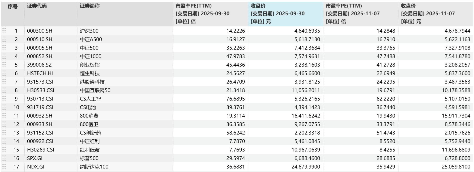 恰逢上市公司三季报公布完毕,懒人养基周末拉了一下平常经常关注的指数估值变化,试图从中看明白股市运行的一些逻辑。