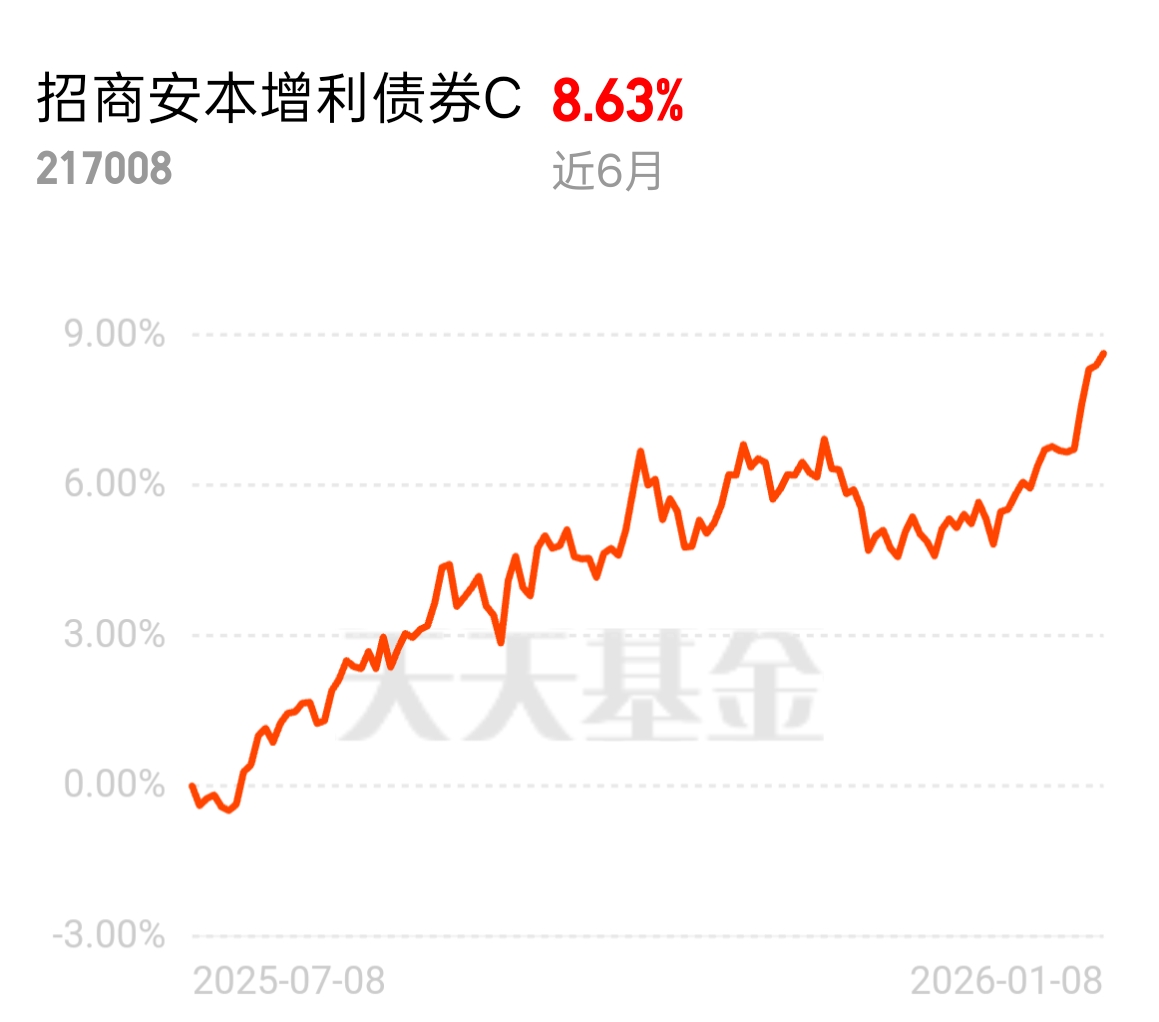 现在债市定价权悄悄转移,选对债基才赚钱,招商安本增利债券 C 近 6 月 8.63%,连涨 5 天不翻车,给普通投资者稳稳的收益回报。$招商安本增利债券C$