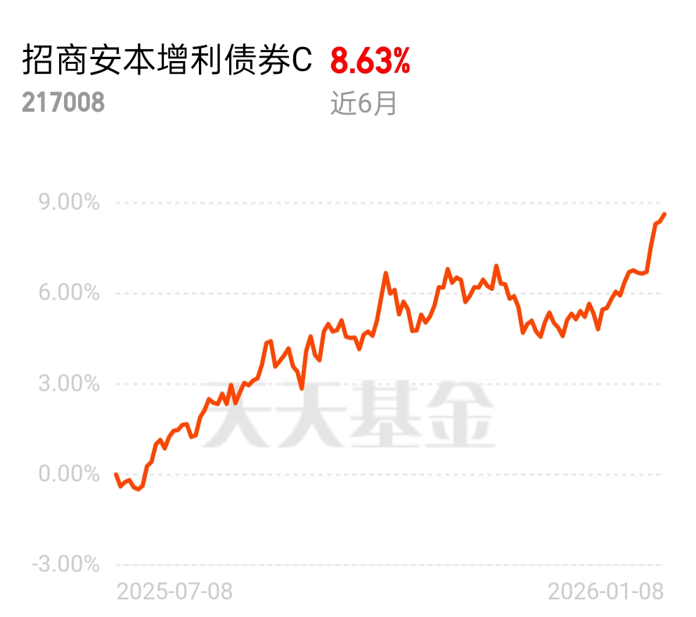 现在大家都在找 “省心” 理财,$招商安本增利债券C$ 近 6 月 8.63%,连涨 5 天没回撤,收益持续在线,普通人理财的安心之选。