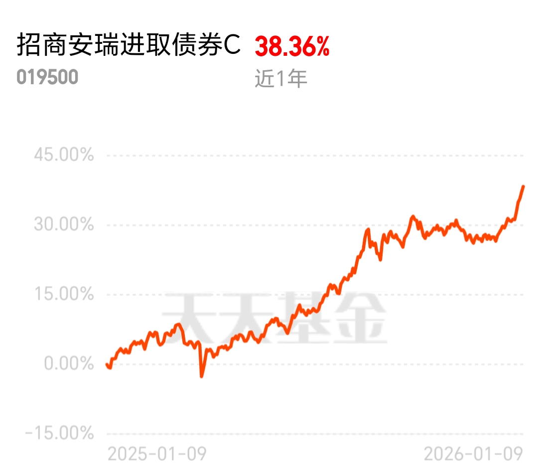 年底止盈潮来了,很多人卖了权益基金想换稳健的,固收 + 刚好匹配。$招商安瑞进取债券C$ 近 1 年 38.36%,比很多固收 + 都能打,纯债收益不行就换它,固收打底超安全,年前想留权益仓位的别错过。