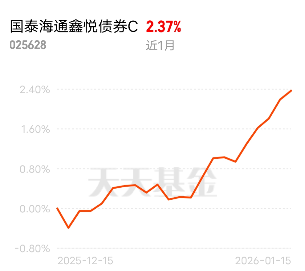 贵金属成为 2026 年投资顶流,黄金价格有望再涨 15%-30%,潜力无限。国泰海通鑫悦债券 C 布局贵金属 + 固收,昨天收 8 个蛋,近一周 142 个蛋到手,稳健把握上涨红利。$国泰海通鑫悦债券C$