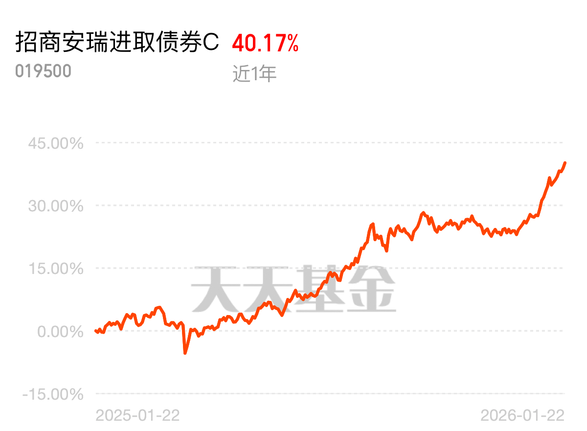 2026 年做债基投资,策略比盲投重要,招商安瑞进取债券 C 找对了方向,近 1 年 40.17% 收益,可转债加少量权益的搭配,在震荡市里头收益能打,回撤还能控,太香了$招商安瑞进取债券C$