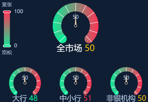 六、资金面情绪指数:全市场50 资金面维稳 (0-100紧张度递增,50为均衡,超过50反映资金紧张)