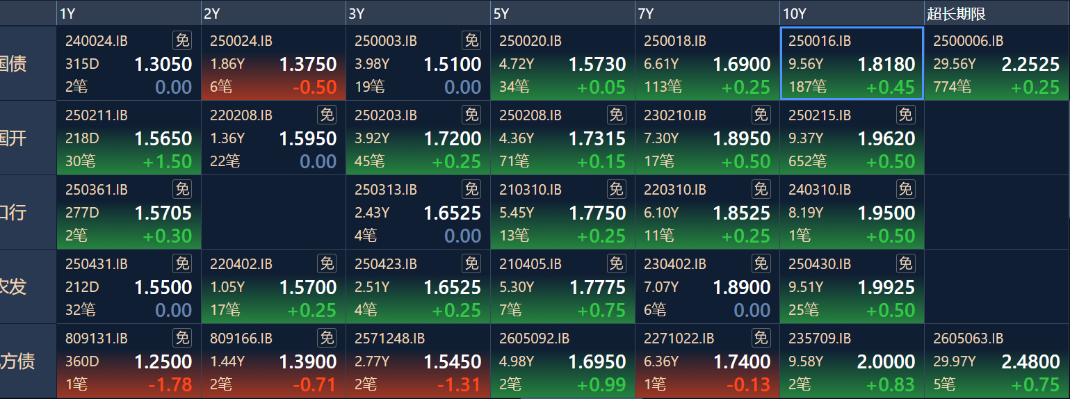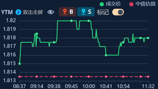 二、十年期国债收益率:1.818 0.0045%(国债收益率越涨,债市越跌,两者反向关系)