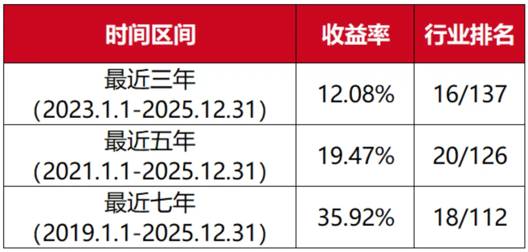 从实际业绩来看,这套投资管理体系有效赋能基金产品的业绩表现。在国泰海通证券基金评价与研究中心发布的《基金公司权益及固定收益类资产业绩排行榜》中,截至2025年12月31日,东方红旗下固收类基金收益率在最近三年、五年及七年的排名中均位于行业前20%,长期业绩持续领跑。