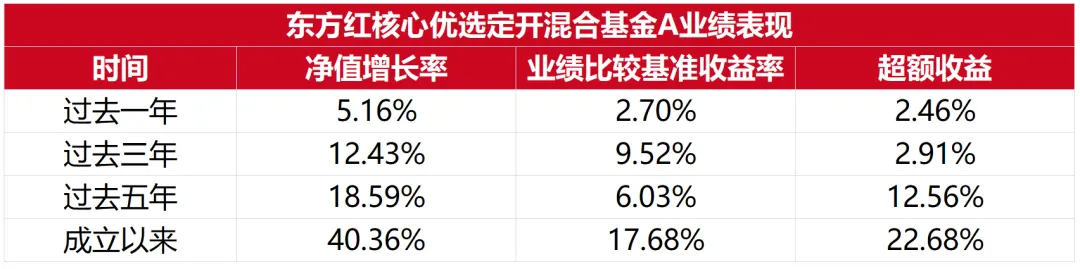 体系化的管理带来了优异的中长期业绩。截至2025年12月31日,东方红核心优选定开混合A类份额成立以来业绩回报达40.36%,同期业绩比较基准收益率17.68%,超额收益22.68%。根据国泰海通证券基金评价与研究中心数据,截至2025年12月31日,东方红核心优选定开混合基金三年期、五年期均为五星评级。