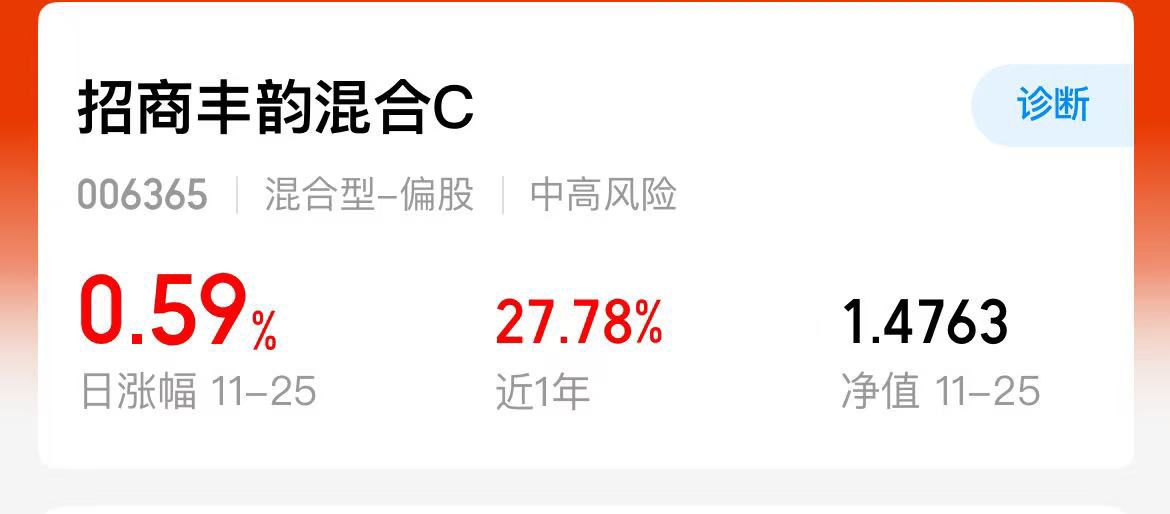 今天市场有所回暖,尤其是前面时间回调,很多的医药板块在今天迎来了强势的反弹,我前面时间在医药里面已经吃了很大的面,我打算转换一部分仓位来到港股这边$招商丰韵混合C$ 这只基金聚焦挨家H股的创新药板块,能够精准抓住这个机会,看看后面的行情,然后我再决定要不要继续加