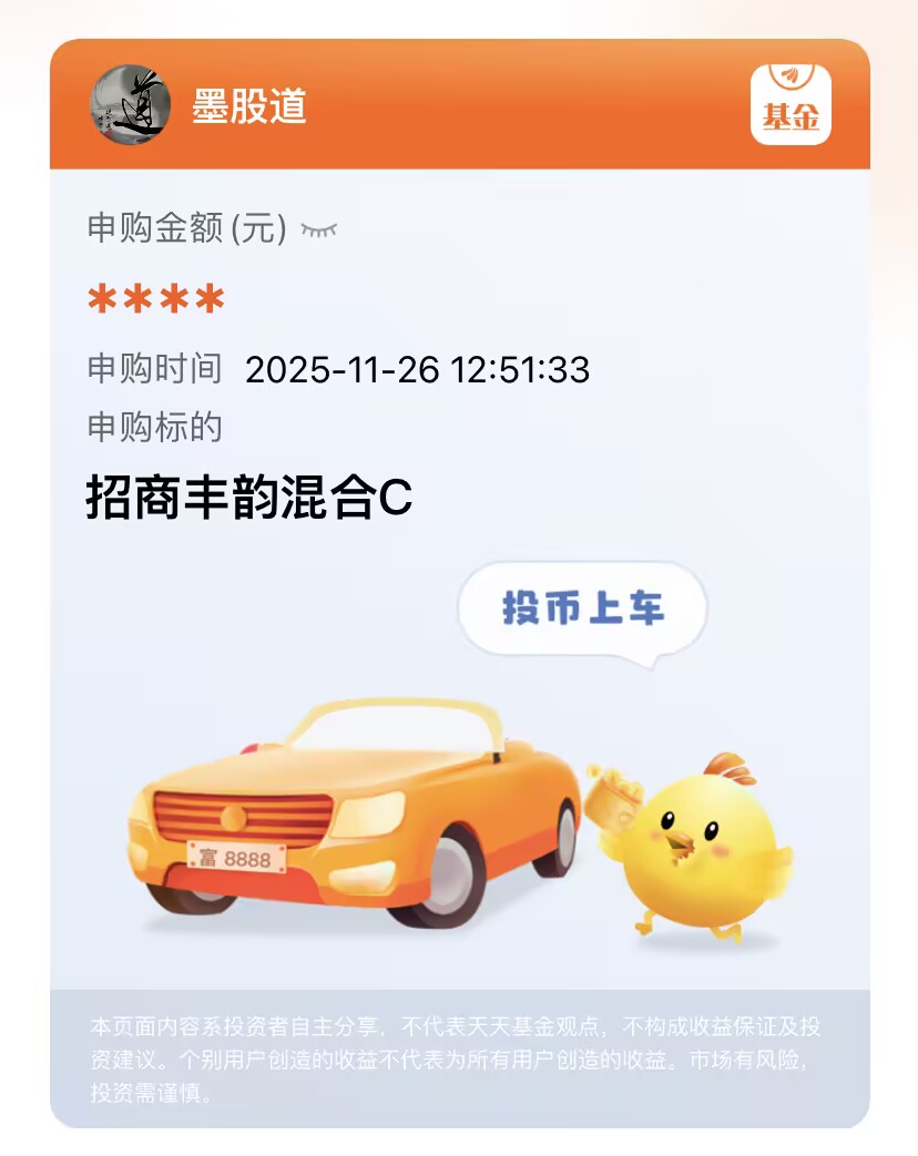 最近行情真挺磨人的,大金融回踩把盘面带崩了,好在医药创新药板块够顽强,这个赛道我觉得挺靠谱。$招商丰韵混合C(OTCFUND|006365)$专门聚焦港股创新药方向,正好踩中这波强势行情。之前同系列的医药基金涨得很猛,这只的潜力看着也足,我现在入手,等着后市兑现收益,我想好好抓住创新药的机会!