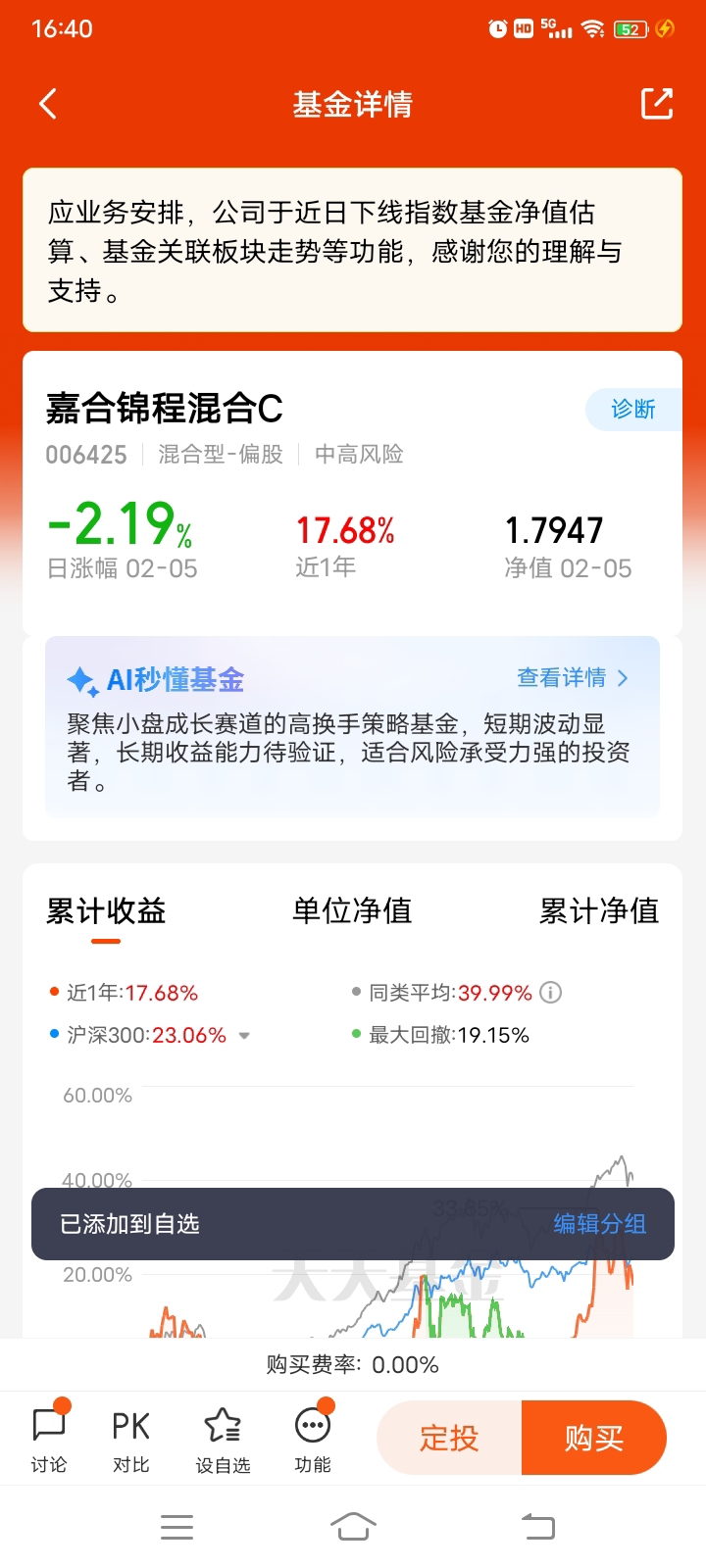 从基金本身来看,嘉合锦程混合A的投资风格与我的风险偏好高度契合。它聚焦小盘成长风格,紧扣产业升级的核心逻辑,在商业航天、高端制造等前沿领域布局深入。虽然规模偏小带来了一定的业绩波动,但也让基金经理能更灵活地捕捉细分赛道的龙头机会,在行业爆发期获得超额收益。近一年18.63%的收益表现,虽然略低于同类平均,但在市场震荡的背景下,已经展现出了较强的抗风险能力和成长弹性,这也让我对它的长期表现更有信心。
