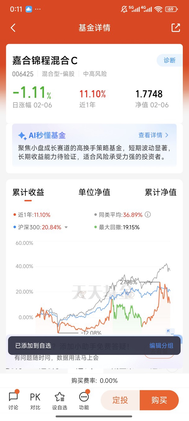 选择嘉合锦程混合,核心是看中其“攻防兼备”的配置逻辑。这只基金采用多策略投资系统,既能通过精选成长股把握科技、消费电子等主线机会,又能动态调整股票仓位规避回撤风险,债券部分还能提供稳健底仓收益 。从业绩来看,近6个月涨幅达16.63%,近12个月也有11.10%的稳健回报,在市场震荡中展现出强抗跌性。更关键的是,基金持仓覆盖比亚迪、宁德时代等优质龙头,同时预留了对新兴产业的布局空间,完美契合我“核心+卫星”的投资思路。