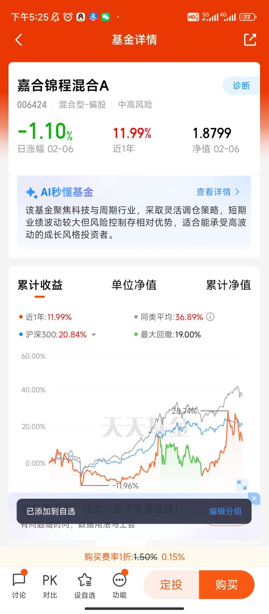 2026年我最看好商业航天,也坚定持有嘉合锦程混合。选这只基金,一是基金经理深耕科技成长,对商业航天、高端制造等硬科技赛道选股精准,持仓贴合产业趋势;二是风格偏稳健,在成长赛道里控制波动,适合普通投资者长期持有,不用频繁操作。