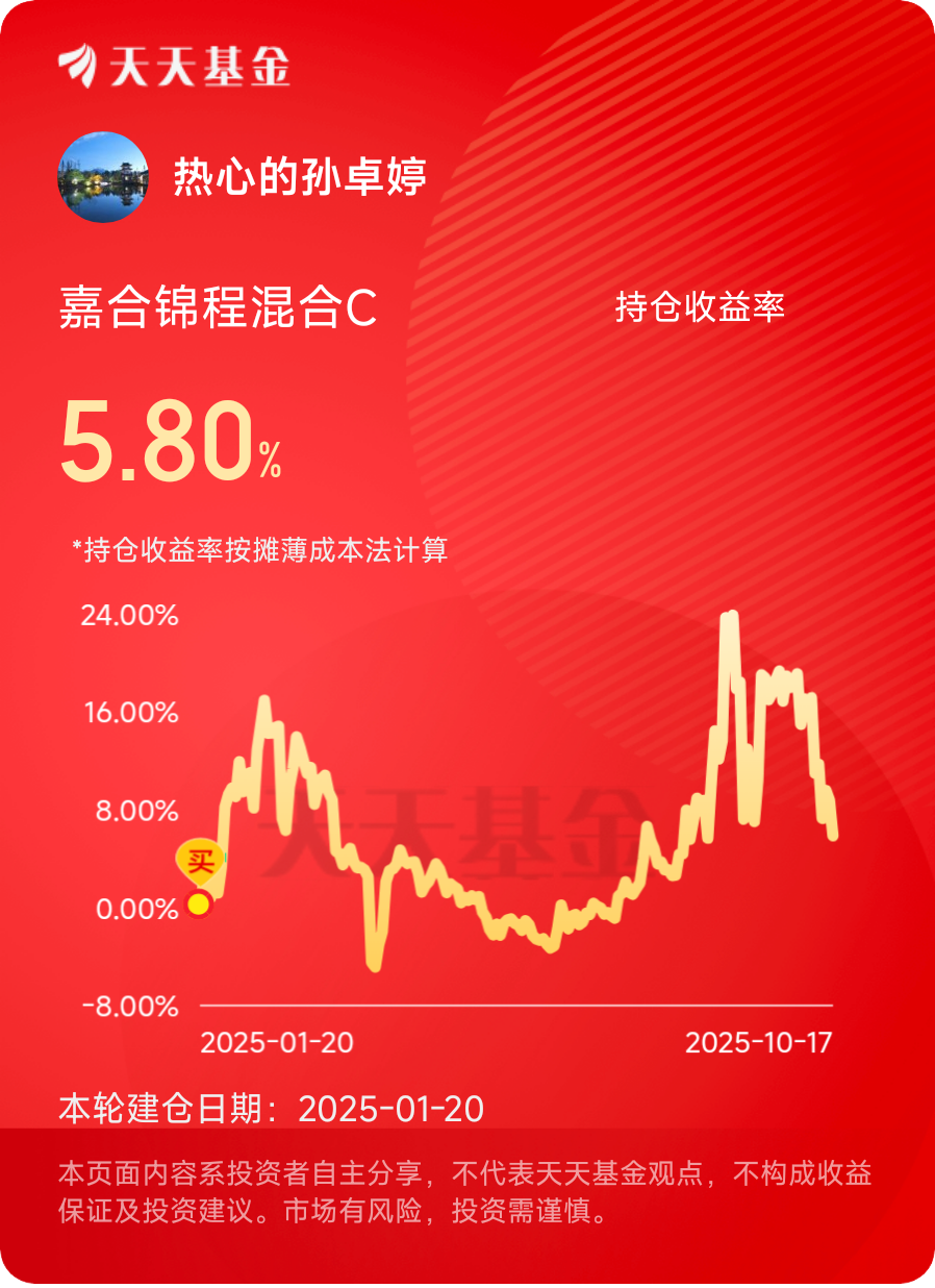 国庆沿富春山居路自驾,见古镇巷陌里奶茶店排起长队,高速服务区的充电桩占满新能源车,连山间民宿的预订都排到了10月底——这些烟火气里,藏着四季度投资的细碎信号:消费在回暖,成长有踪迹,而我选择将闲钱托付给嘉合锦程混合C(009245),恰是看中它在波动里藏着的“细腻功夫”。