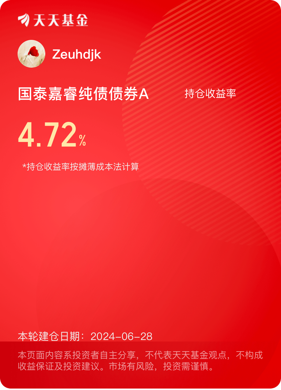 国泰嘉睿纯债债券A作为纯债基金,债券属性纯正,对于稳健型投资者而言,可作底仓配置;对权益资产较多投资者而言,也可用该类产品平滑波动,以期短期避险、长期增值。#晒收益#