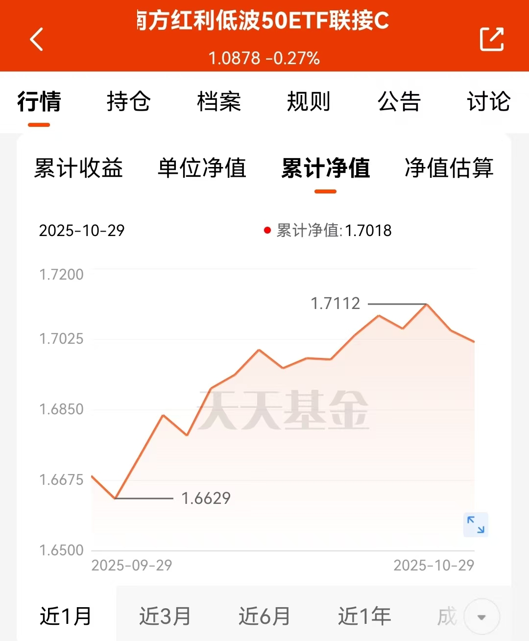 最近和朋友交流,发现大家多少都在组合里配置了红利类资产。问原因,普遍觉得市场未来可能还是结构性的行情,单一风格持续领跑的难度大,而红利策略在不同市场环境下适应性更强。像$南方红利低波50ETF联接C$(008164)这类产品,既受益于高股息带来的现金流,又通过低波动因子控制回撤,双重保障下,持有心态会更平稳。对于希望逐步积累资产、不追求一夜变