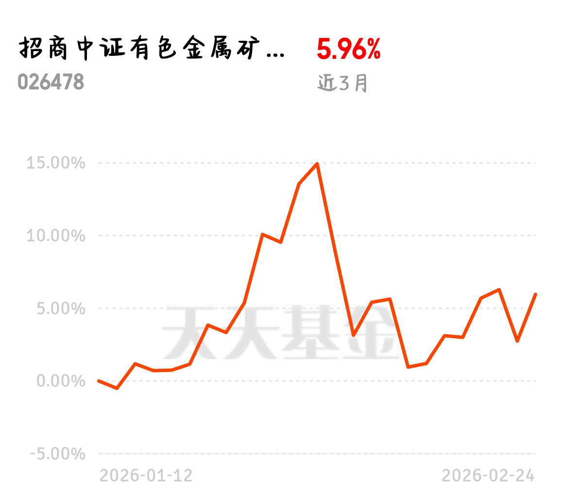 黄金避险抗通胀双属性爆发,春节海外上涨打底,短期走势依旧很强势。招商中证有色金属矿业主题 ETF 发起式联接 C近一周涨幅 3.13%,费率最低一档,当下位置正合适,继续布局。$招商中证有色金属矿业主题ETF发起式联接C$