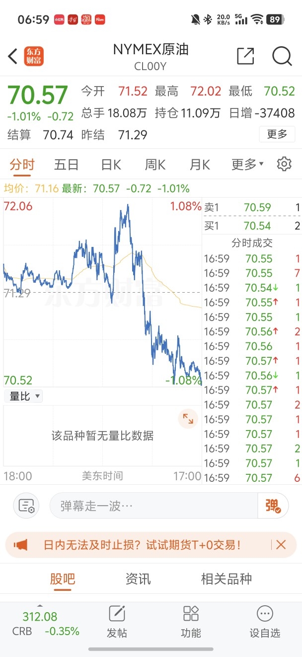 原油期货继续冲高回落,目前还是守着70$这个位置,确定不向下突破下?$景顺长城纳斯达克科技ETF联接(QDII)E人民币$