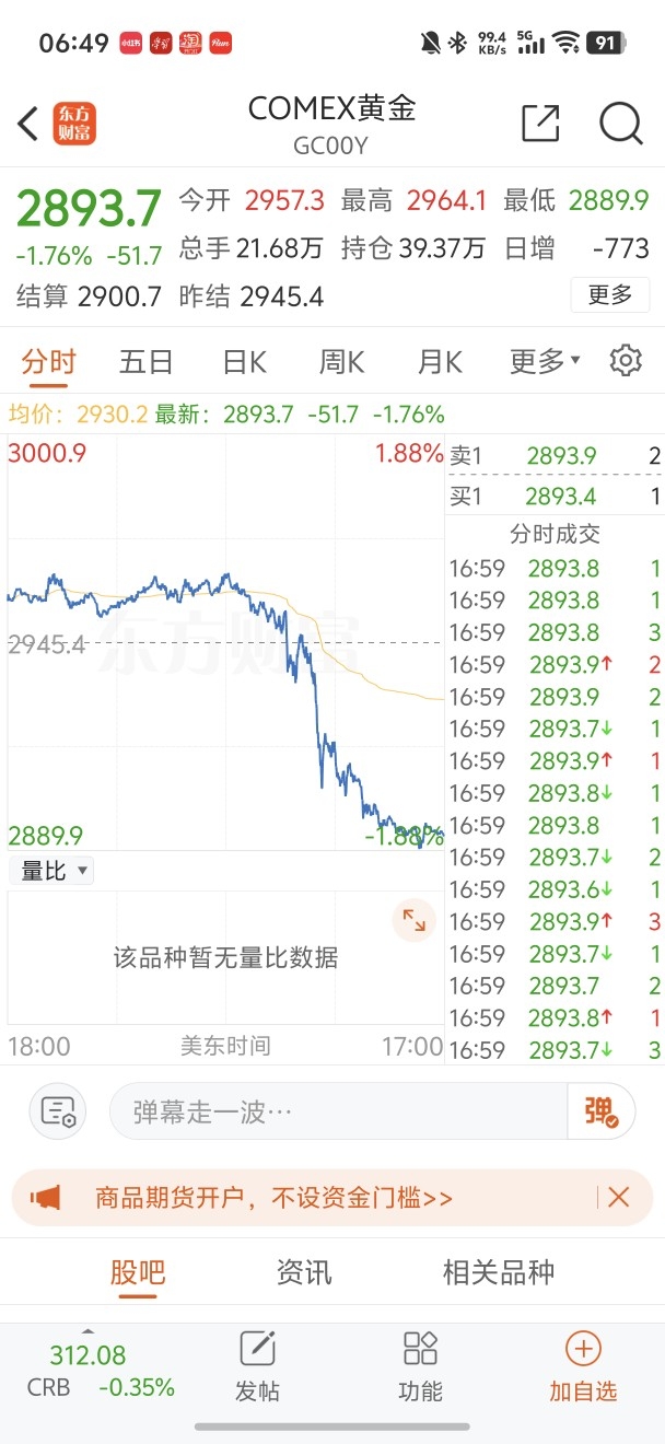 黄金期货昨晚大跌超1.7%,跌下来吧,涨的太多了,得停下来歇一歇,周一在跌的话就补点。