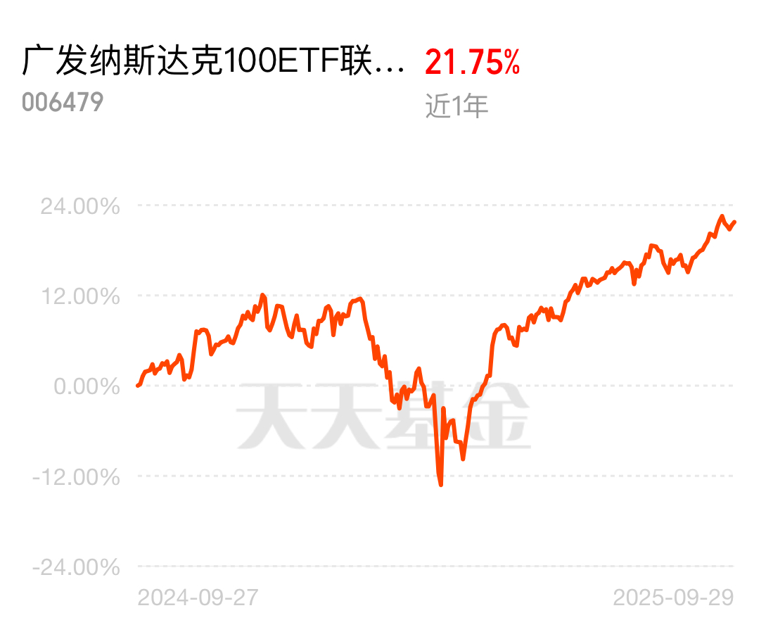 今天涨还是跌?兄弟们有无情报员给个消息的?降息周期投美股应该挺不错的吧,小加一点$广发纳斯达克100ETF联接人民币(QDII)C$