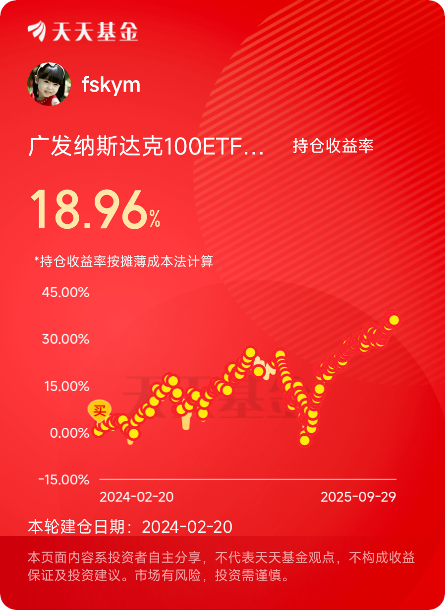 它代表了均值高的确定性。你可能错过某个暴涨的妖股,但你绝不会错过时代发展的整体红利。这是一种“分散化聚焦”,将风险分摊给上百家头部企业,而将收益托付给科技文明的必然未来。@广发基金 #晒收益#