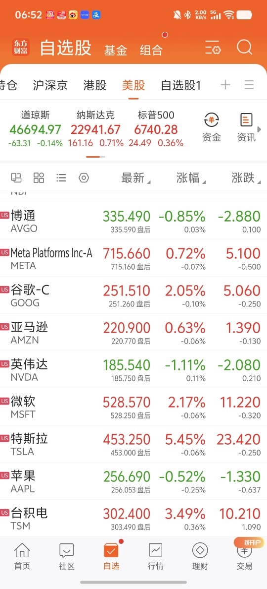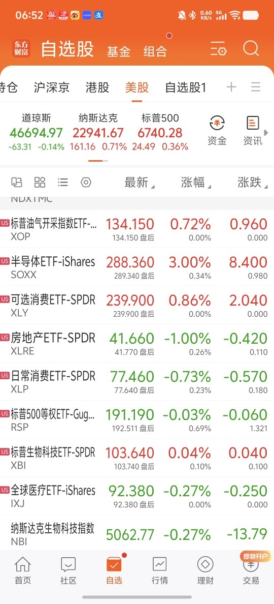 板块方面,半导体大涨超2.5%,油气和日常消费收涨,其余多数小跌。大型科技股涨多跌少,博通,英伟达和苹果收跌。