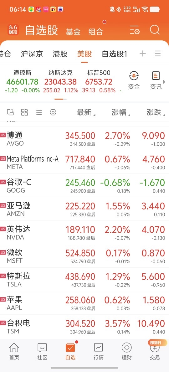 板块方面,半导体涨幅最大,标普生物科技涨幅也还可以。大型科技股涨多跌少。