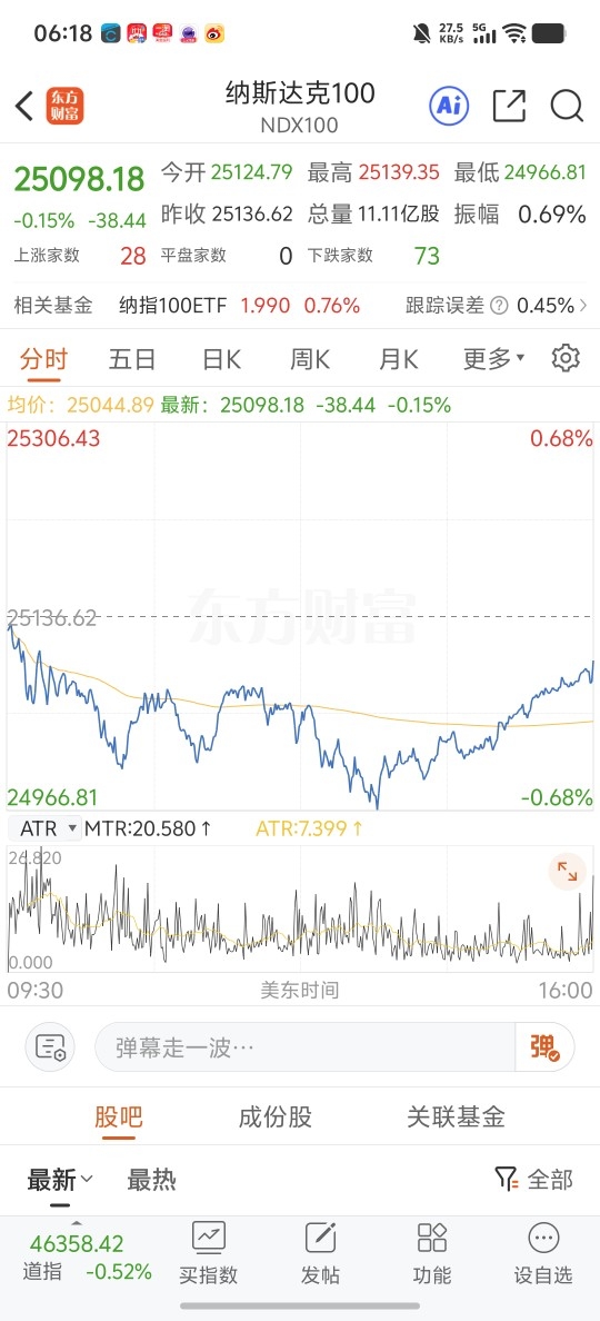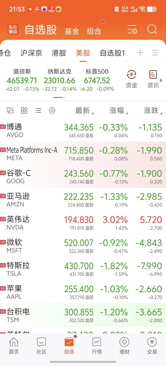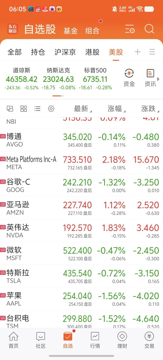 板块方面,多数收跌,油气板块跌幅比较大。标普生物科技涨的最好,大型科技股跌多涨少,meta,英伟达和亚马逊收涨。