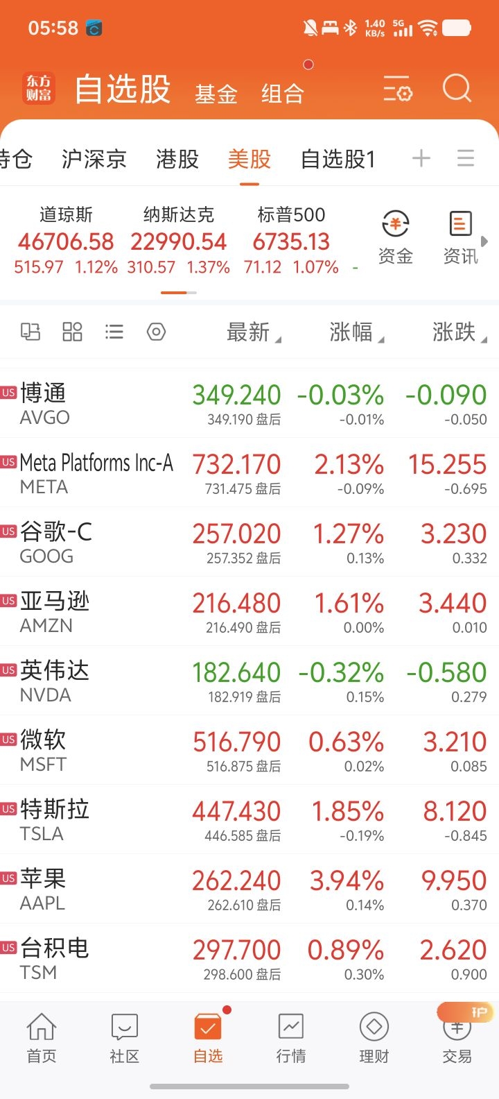 板块方面,多数收涨,除了日常消费小跌外,大型科技股多数收涨,博通和英伟达收跌。