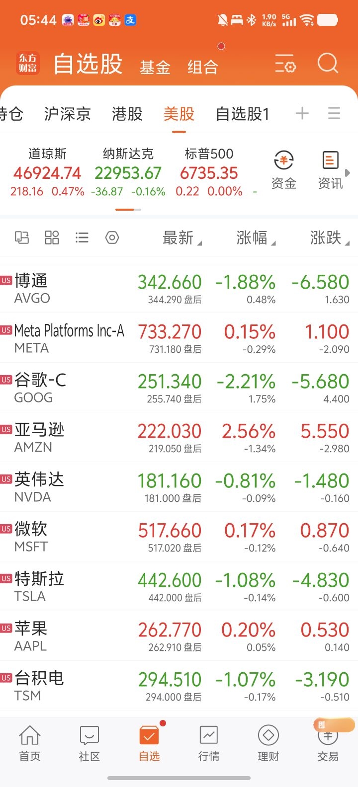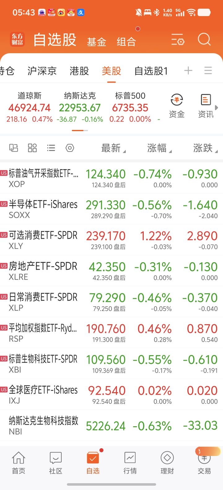 板块方面,多数收跌,黄金暴跌,消费涨的不错,其余多数收跌,大型科技股涨跌不一,除了亚马逊涨的不错,其余都很一般。