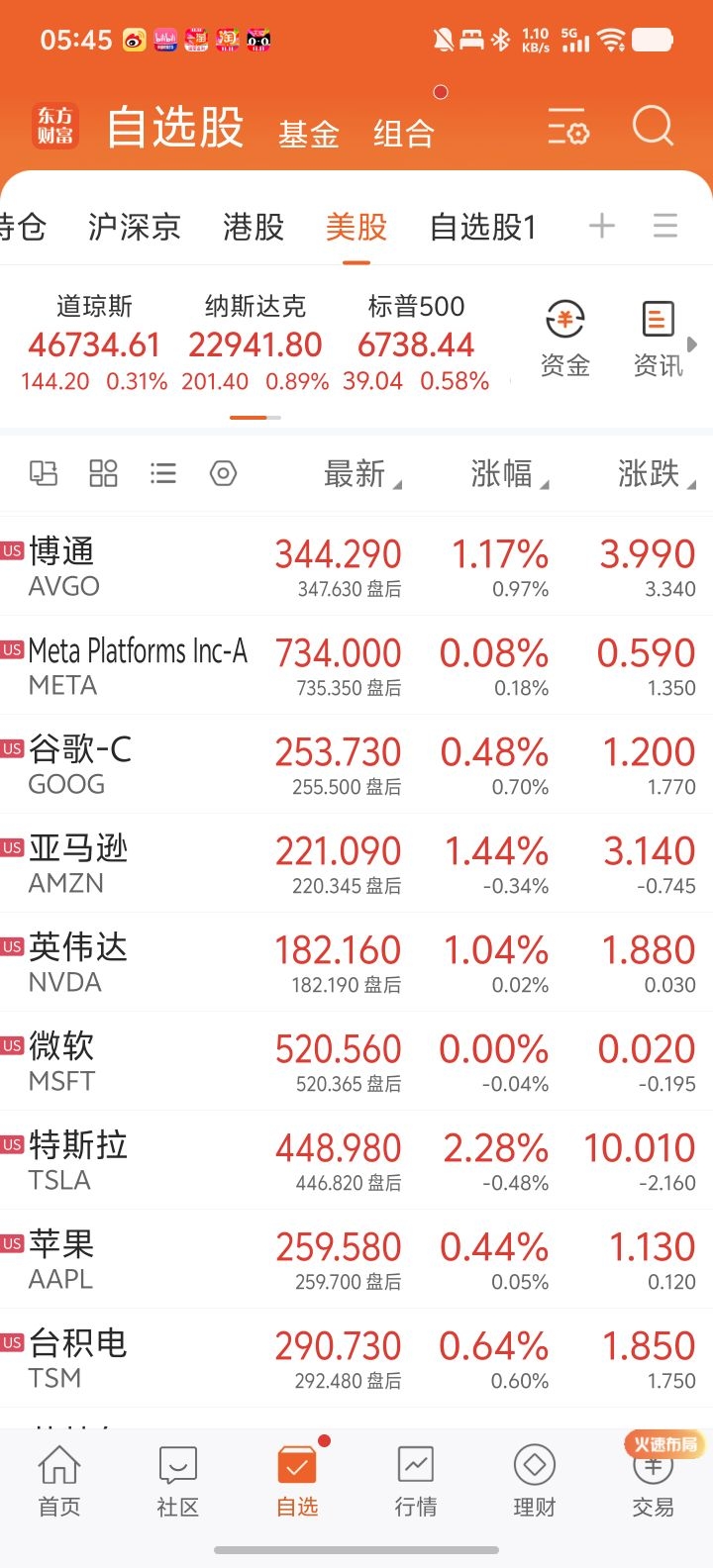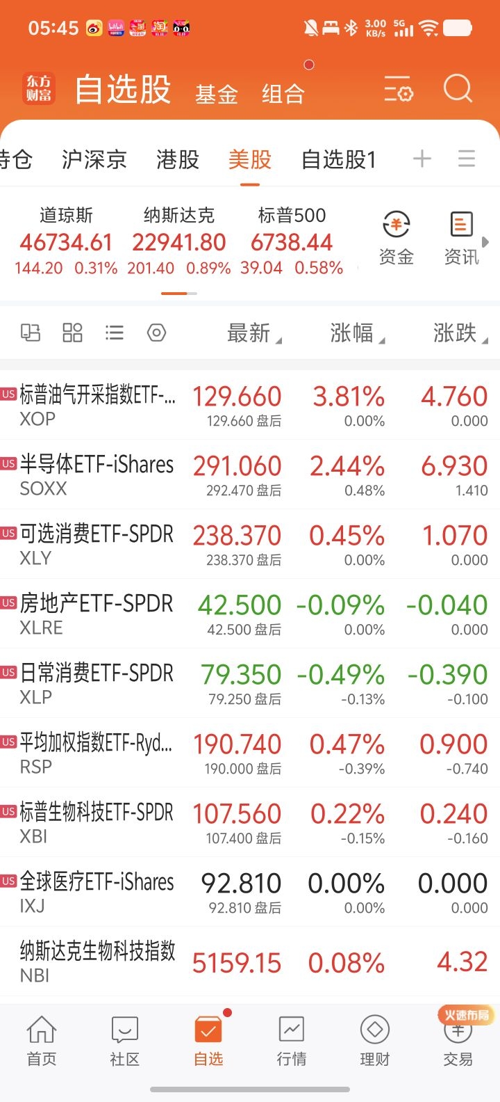 板块方面,原油涨的最好,油气板块也大涨超3%,半导体板块也涨超2%,其他比较一般。大型科技股全面上涨,meta,谷歌,微软,苹果涨幅比较一般。