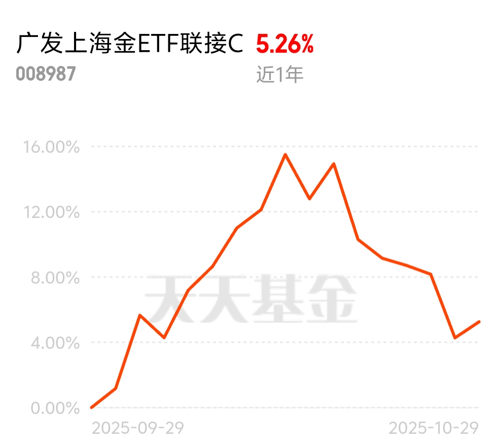 黄金应该现在还能进一点吧,我看的上海金里面热度最高的就是这只$广发上海金ETF联接C$ ,1年能涨快50点够牛!