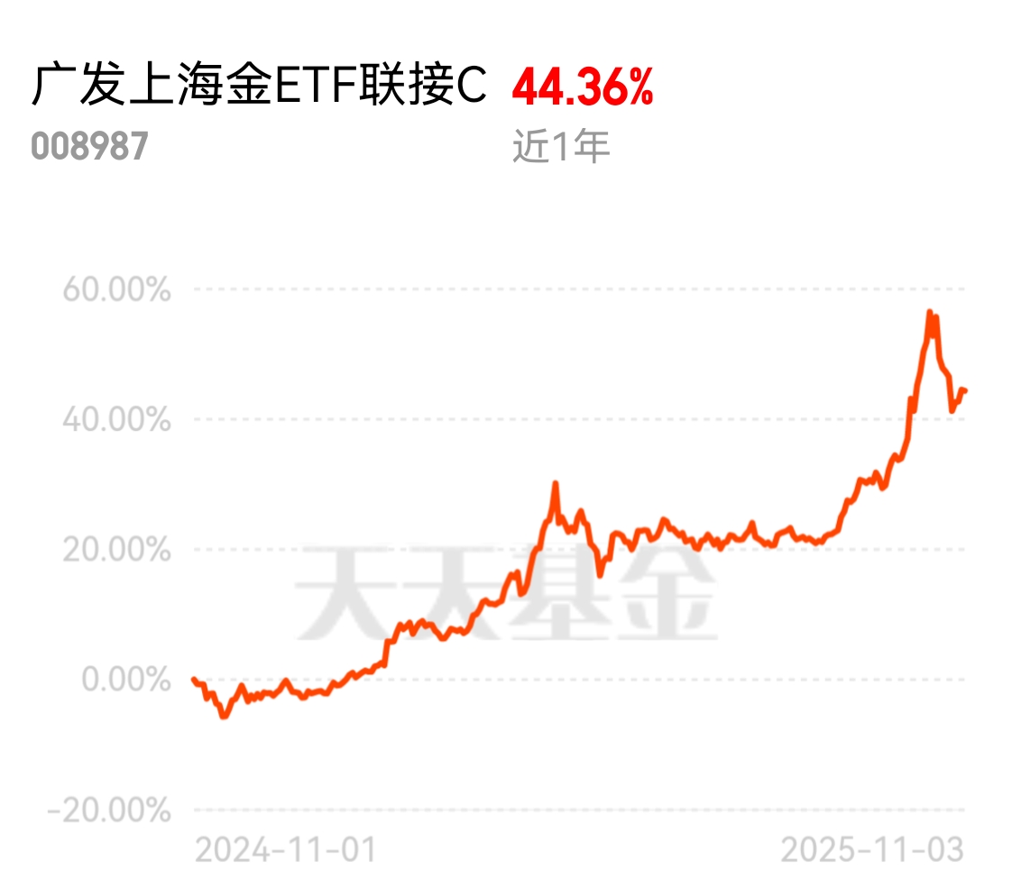 与其焦虑这那的不如赶紧抓住低价机会入场,$广发上海金008987$1年能涨40个点是真的,拿着等就行